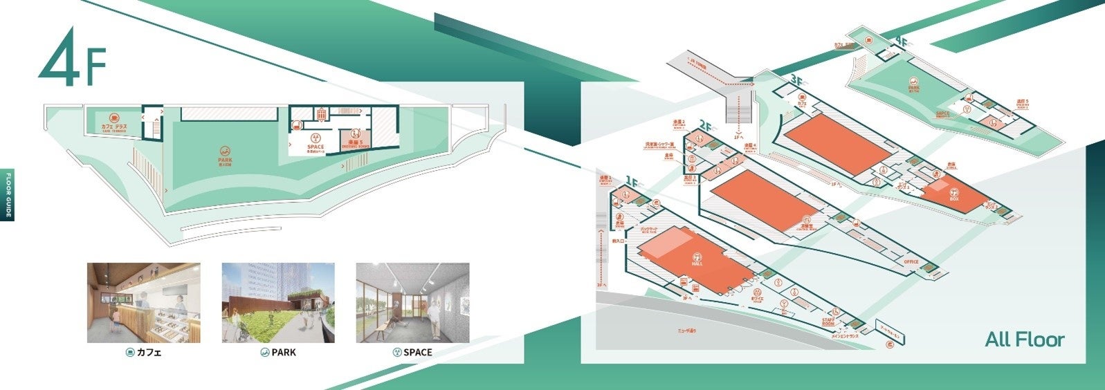 又、配信イベント・リハーサルスタジオとしても使用できる3F 「BOX」や、展示・ライブ物販などに適した4F 「SPACE」、