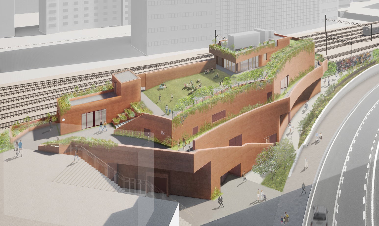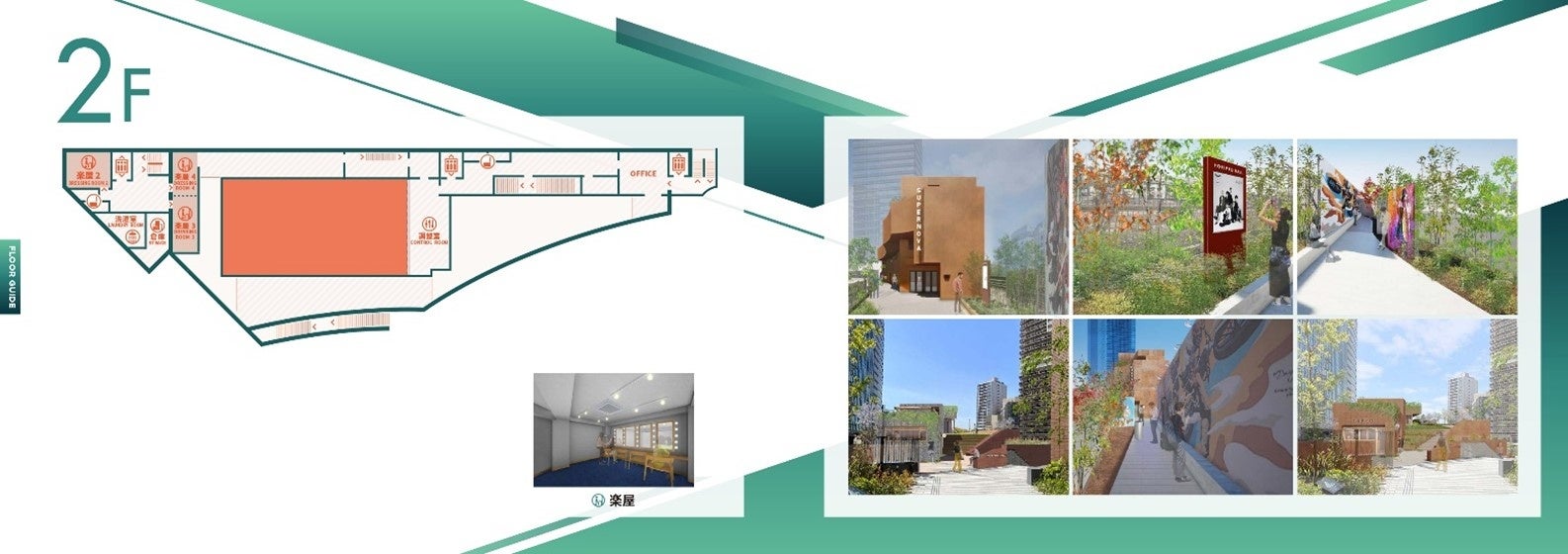 屋上には天然芝の開放的な屋外スペース 「PARK」と、計4つのレンタルスペースが併設され