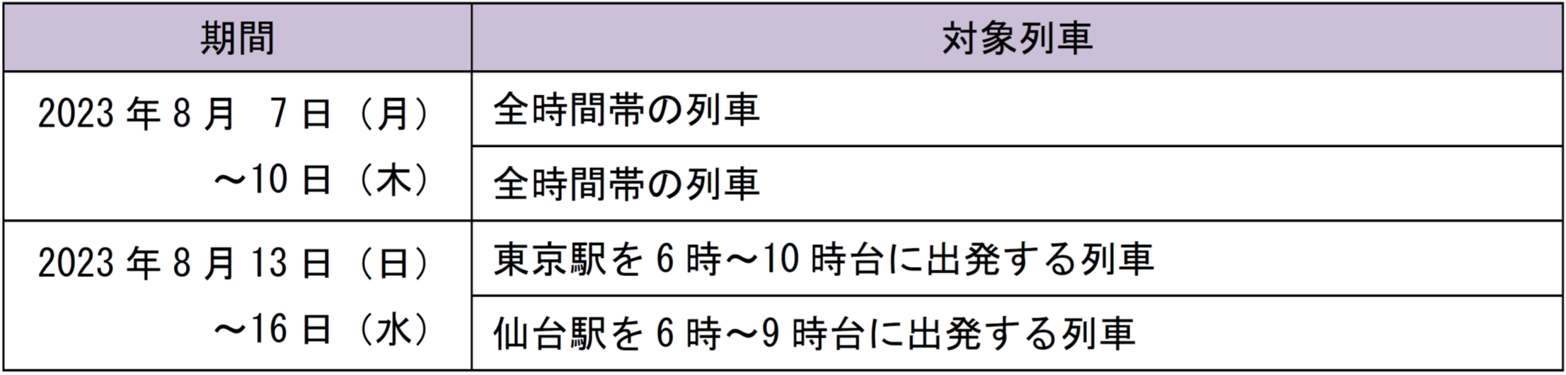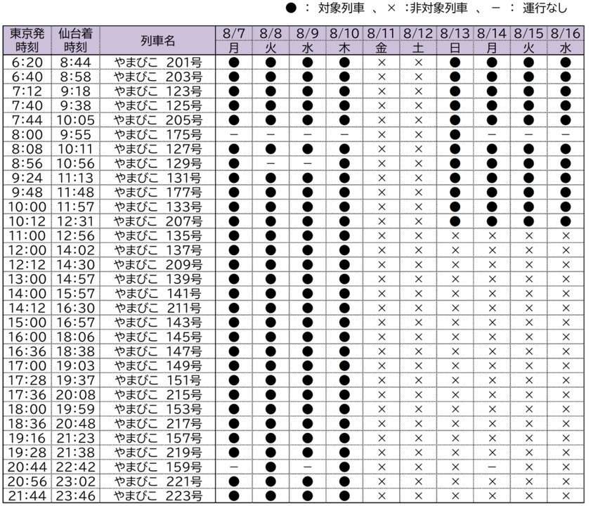 ※同区間を走行するはやぶさ号・こまち号・なすの号や、仙台以北まで運行するやまびこ号は対象外です。また、一部のやまびこ号と併結されているつばさ号も対象外です。