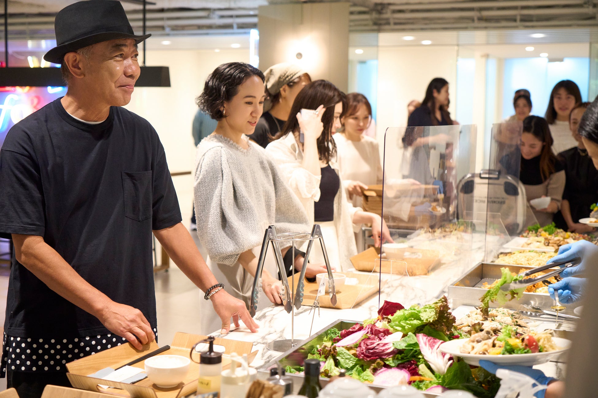 就任式当日は、日々ウェルネスデザインに取り組むマッシュグループ社員との交流を行いました。社員食堂や参考書籍のディスプレイされたライブラリー、ファッションデザイナーが多数在籍するデザイナーミーティングに参加いただくなど、オフィス内の様々な場所で垣間見えるウェルネスデザインについても体感いただきました。
