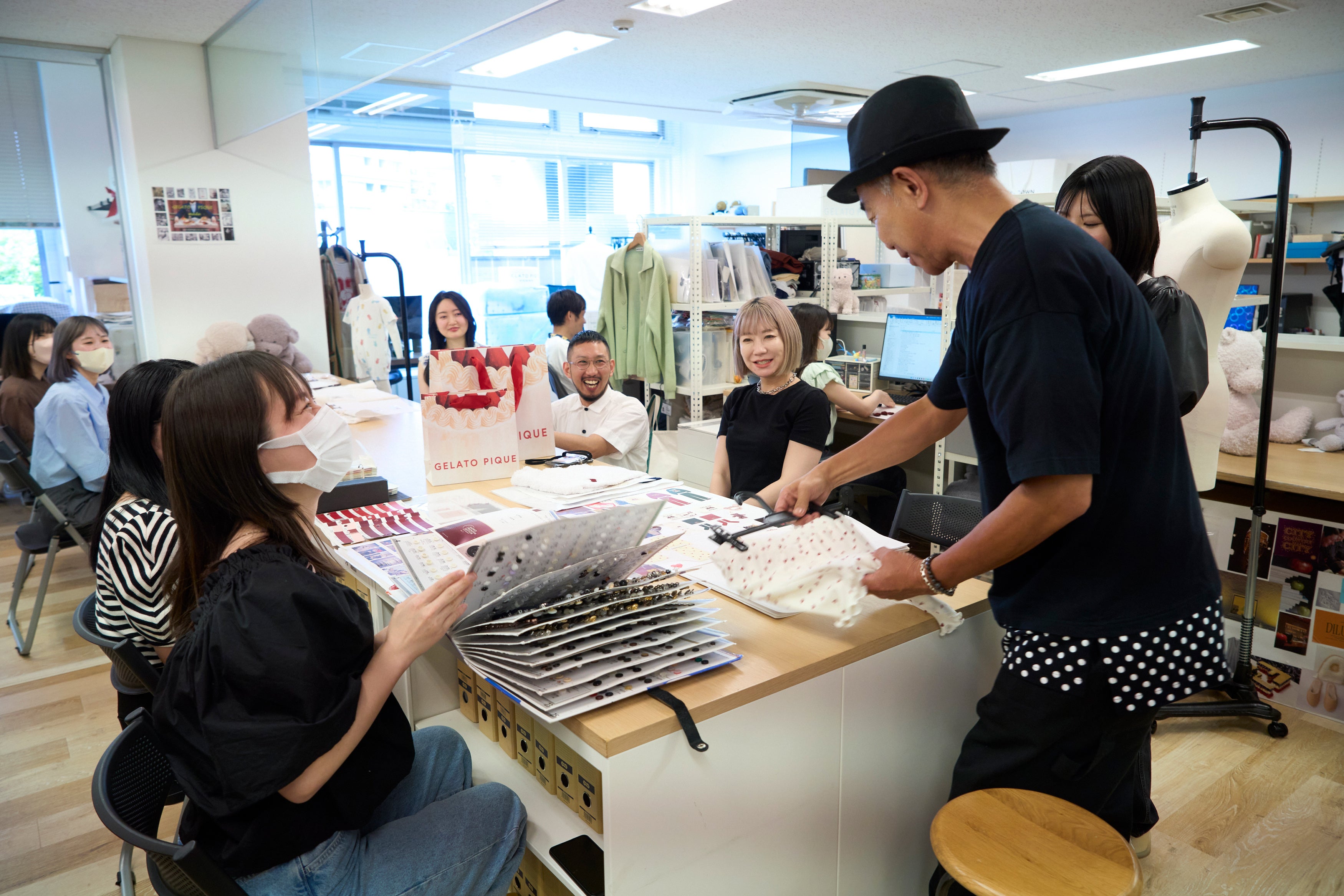 就任式当日は、日々ウェルネスデザインに取り組むマッシュグループ社員との交流を行いました。社員食堂や参考書籍のディスプレイされたライブラリー、ファッションデザイナーが多数在籍するデザイナーミーティングに参加いただくなど、オフィス内の様々な場所で垣間見えるウェルネスデザインについても体感いただきました。