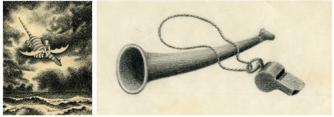 右:『エルマーと16ぴきのりゅう』原画1951年© Dragon Trilogy Irrevocable Trust/Kerlan Collection of Children’s Literature, University of Minnesota Libraries, USA