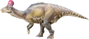 鼻から後頭部にかけて半円形のトサカ上の骨があるのが特徴。このトサカ骨は中空状になっており、音を出すための共鳴腔だったのではないかと言われている。