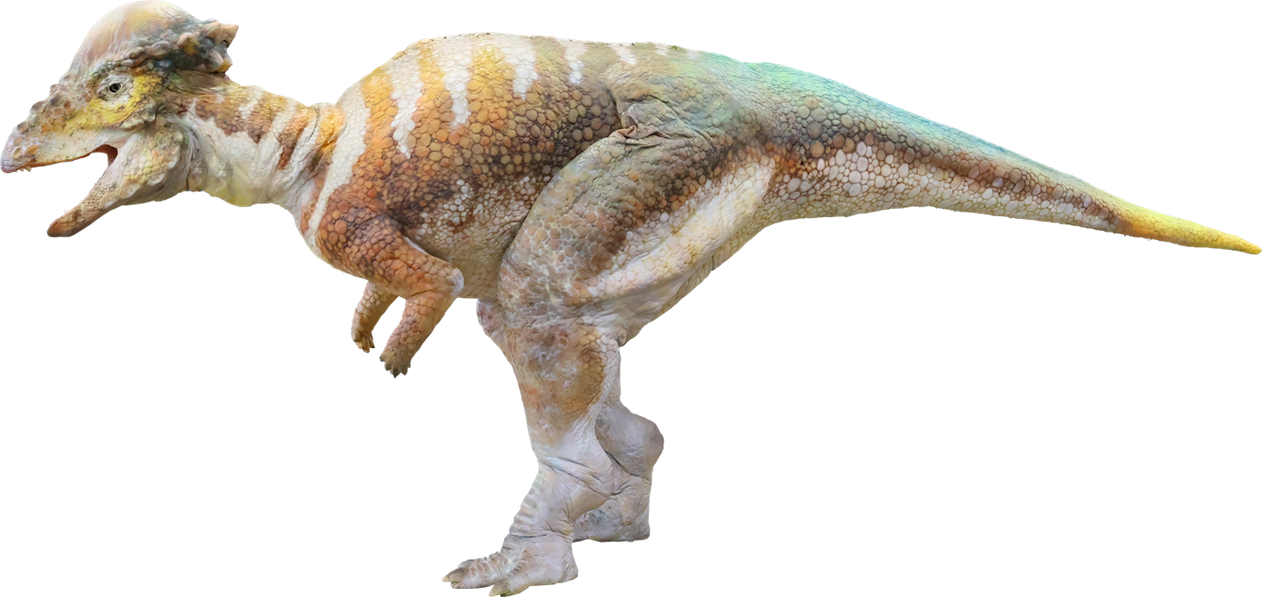 厚頭竜類の代表格で、クチバシのような口先と小さな歯を使って植物や昆虫などを食していた。