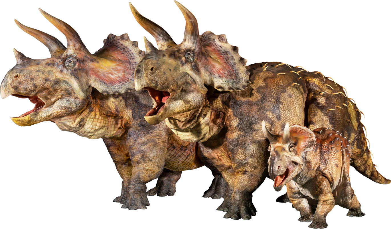 頭部に角やフリルを持つものが多く、それらで肉食恐竜たちの攻撃から身を守っていた。