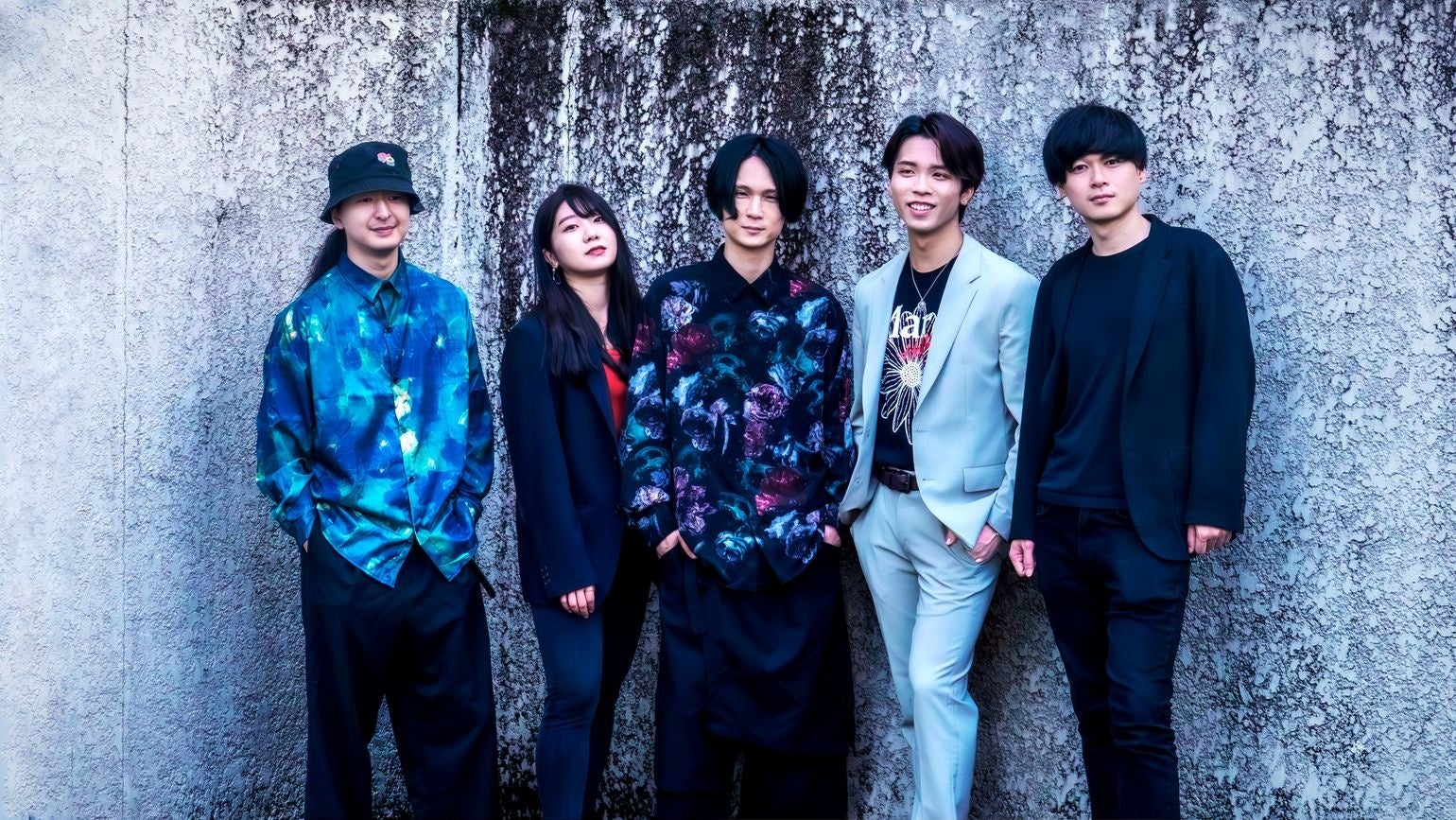 写真左より、撮影編集・パーカッション担当のSheena、ボーカル担当のYURI、ボーカル・キーボード・ダンス担当の滉一、作詞作曲・ボーカル担当のYOGO、企画・編集・作曲担当のBINGEの5人で活動。