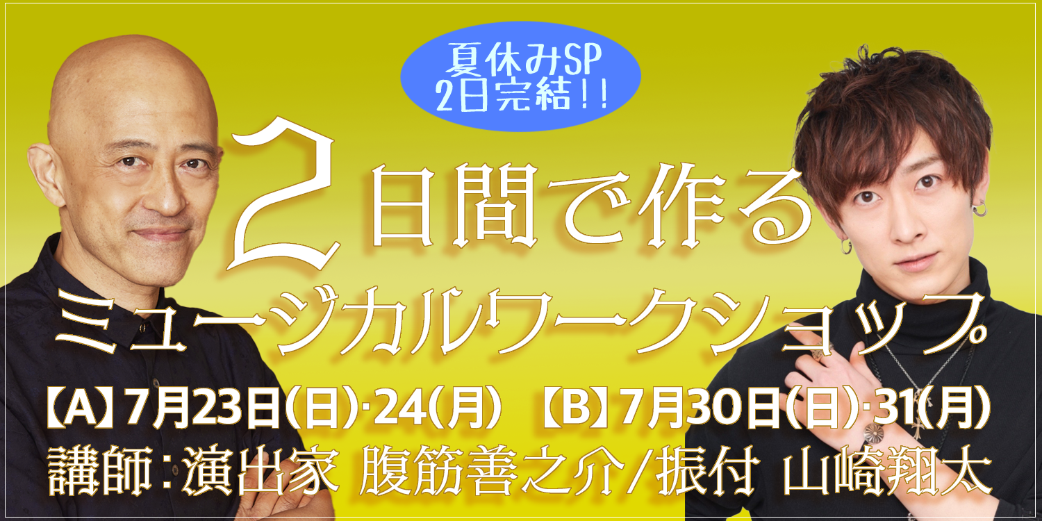 プロフェッショナルな講師と一緒に、作品作りをしながら演技とダンスを徹底レッスンする夏休み限定2日間で作るミュージカルワークショップを開催します!