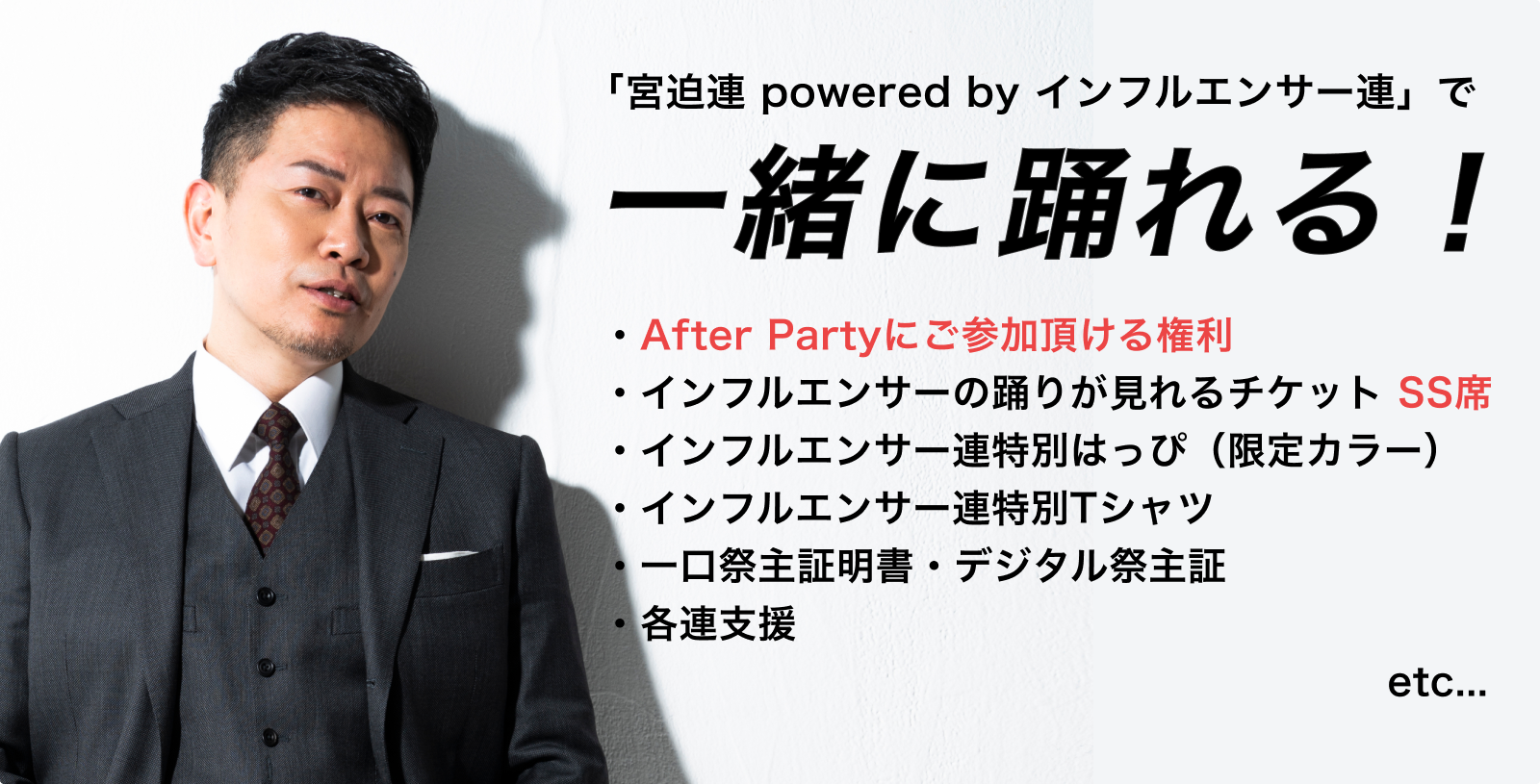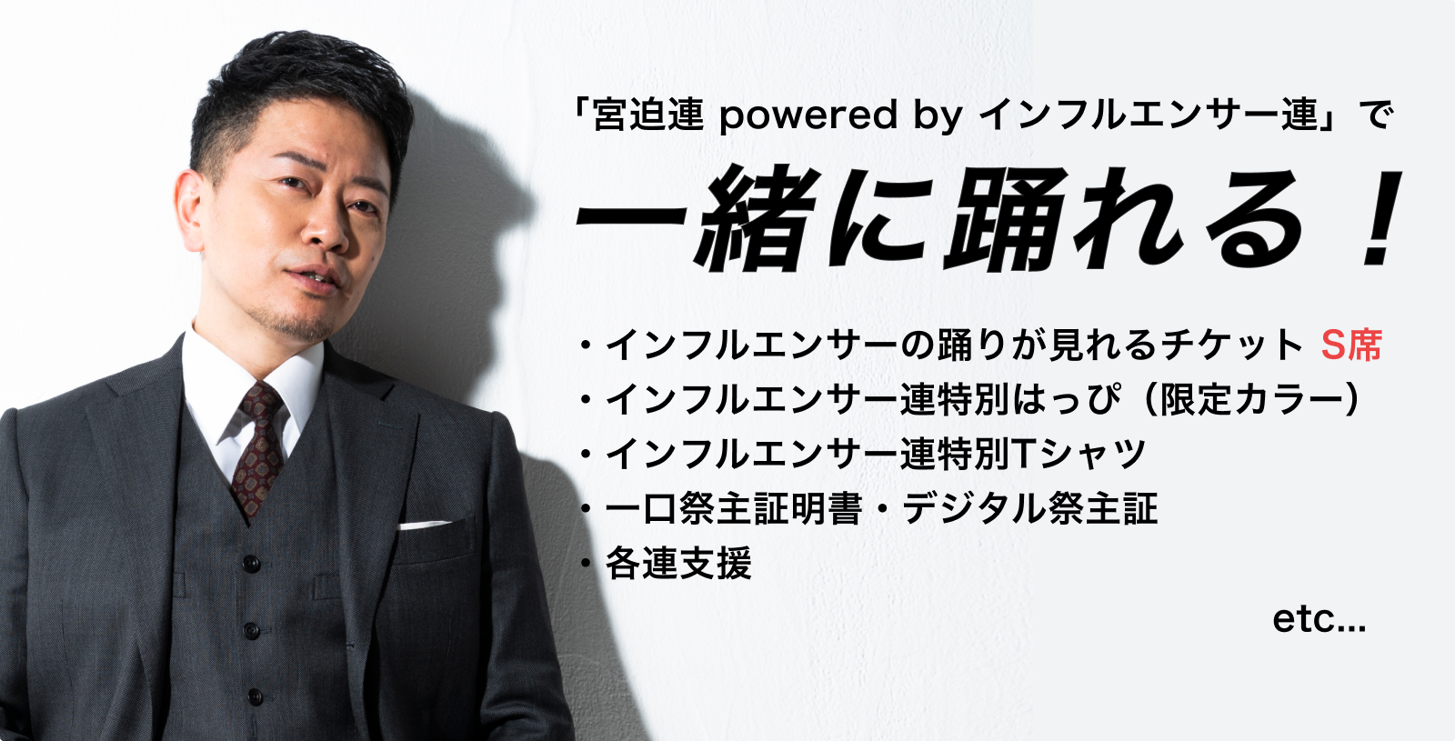 ※「宮迫連 powered by インフルエンサー万博」以外にも一緒に踊れる連はございます。詳しくはクラウドファンディングページをご確認くださいませ。