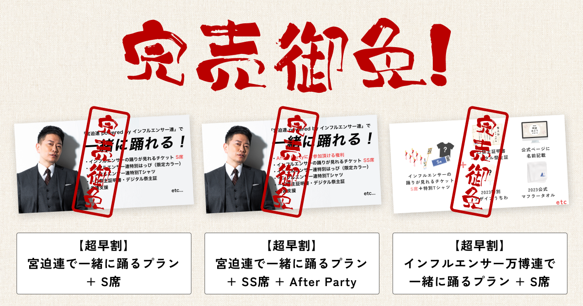 ・「宮迫連 powered by インフルエンサー万博」で一緒に踊れる権利