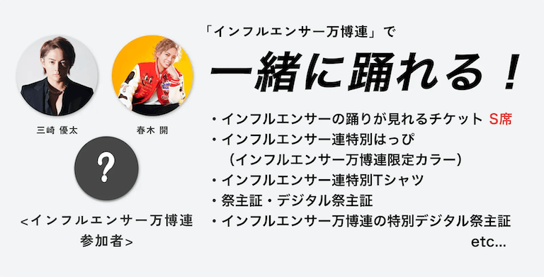 ・「インフルエンサー万博連」で一緒に踊れる権利