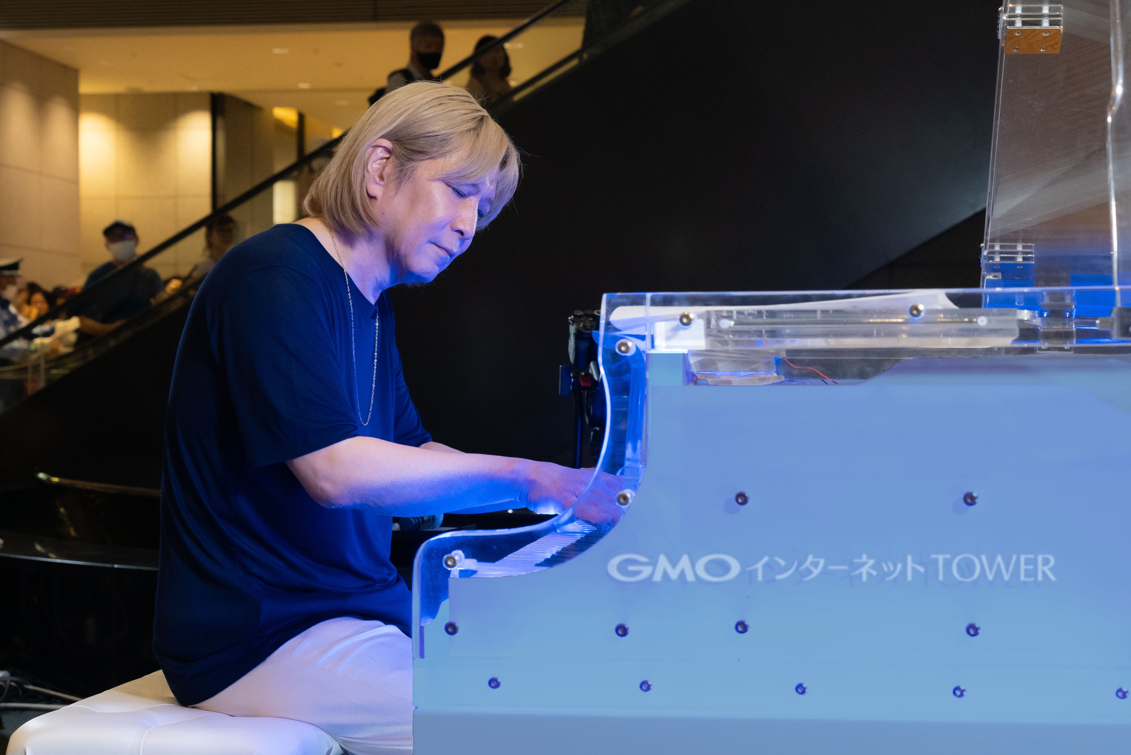 2023年5月には、GMOインターネットTOWERを中心に音楽に溢れた街づくりを目指し、多くの方々に“音楽を演奏する場所“と“音楽にふれる機会“を提供していきたいと考え、クリスタルピアノを設置し、このたび新たな「GMO LIVE」を開催する運びとなりました。