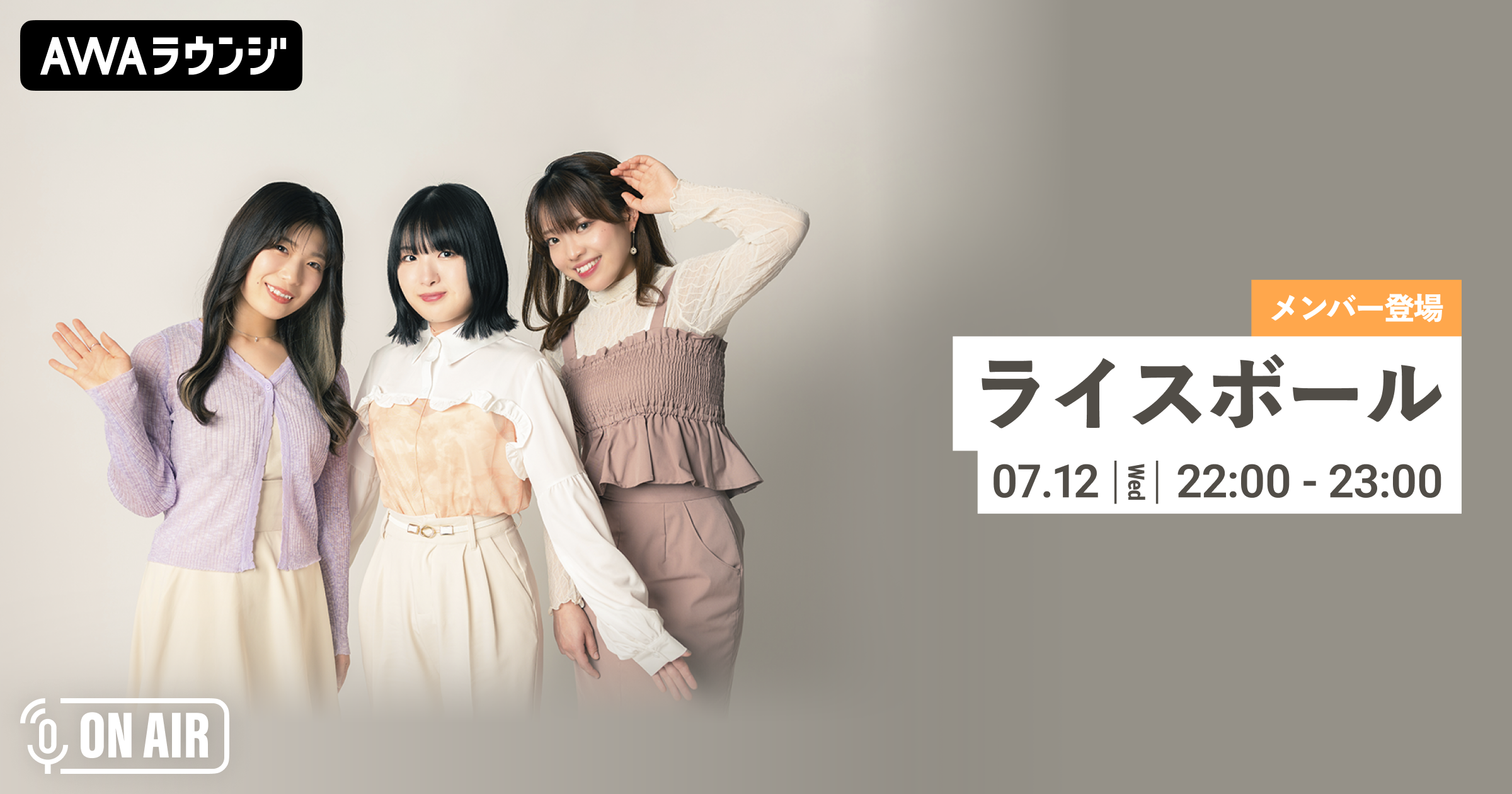 AWA株式会社(本社:東京都港区、代表取締役CEO:冨樫晃己)が運営する、サブスクリプション型(定額制)音楽ストリーミングサービス「AWA(アワ)」は、2023年7月12日(水)22:00から1時間、ライスボールのメンバーが音声とチャットで参加するAWAラウンジを開催いたします。