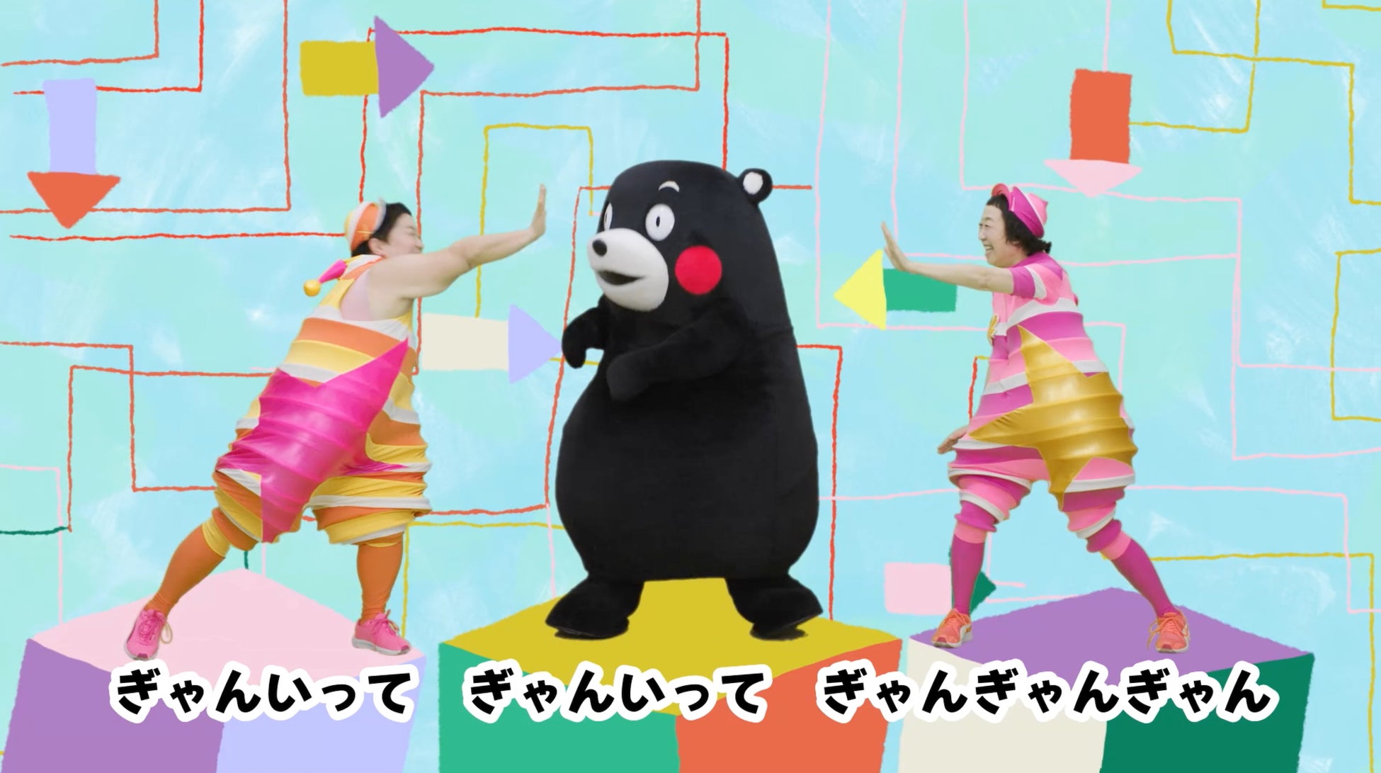 また、ポジティブになろうよと励ましてくれるくまモン流のメッセージソング『やってみなきゃ』は、誰しもが耳なじみのある学校で広く使用されるチャイム音をアレンジし、ボックスステップや手拍子なども取り入れた世代を問わず楽しめるダンスナンバーとなった。