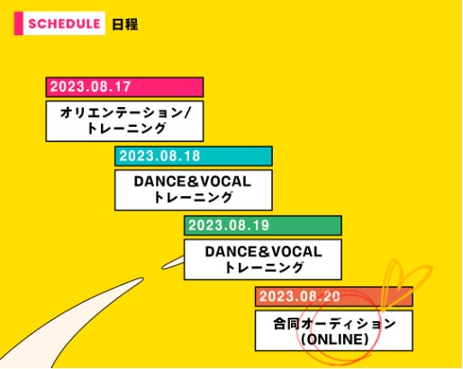 開催期間は、2023年8月17日(木)から20日(日)までの4日間で、最終日には「合同オーディション」をオンラインにて実施いたします。オーディションには、YG ENTERTAINMENT、SOURCE MUSIC、THEBLACKRABELを含めて20社以上の事務所が参加する予定です。