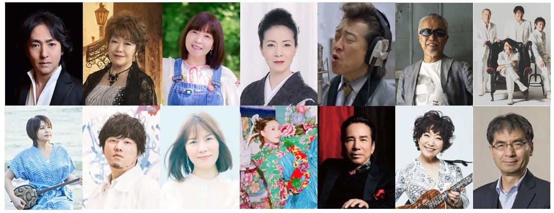 写真左下より、夏川りみ、秦基博、半﨑美子、一青窈、布施明、森山良子、富澤一誠