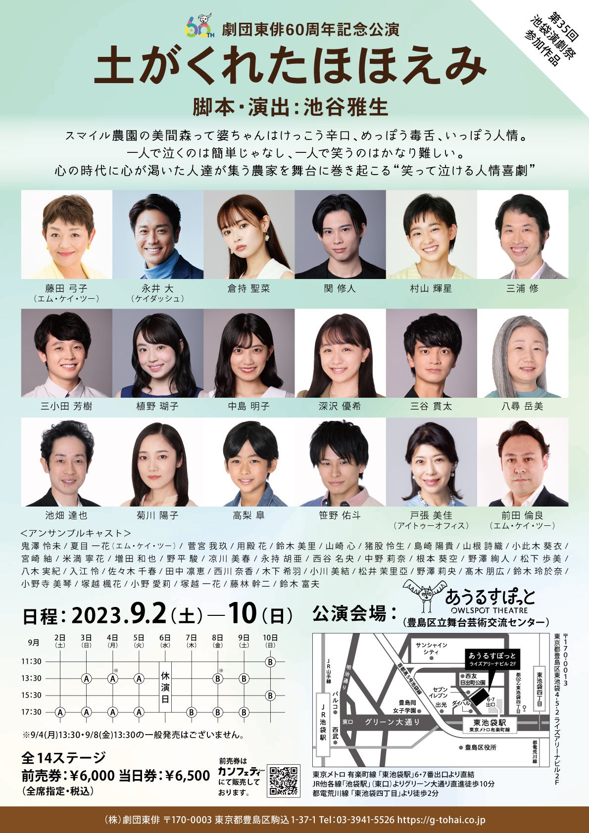 アニバーサリーイヤーを記念し、劇団東俳60周年記念公演「土がくれたほほえみ」の上演が決定いたしました。