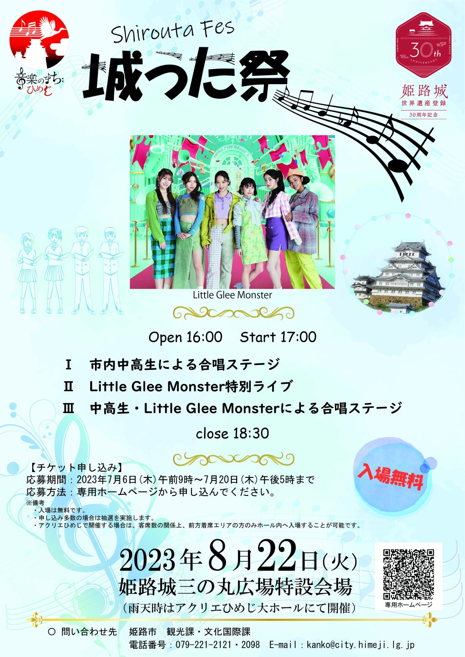 姫路城三の丸広場特設ステージ(雨天時はアクリエひめじにて開催)