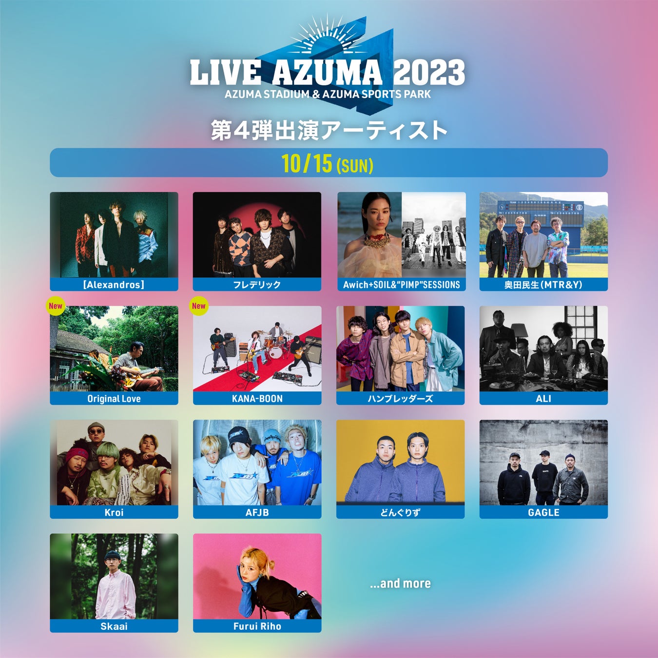 【名 称】LIVE AZUMA 2023 (読み方:ライブアヅマ ニーゼロニーサン) 【日 程】2023年10月14日(土) 、15日(日) OPEN9:30 / START10:30(予定) 【会 場】あづま総合運動公園 / 福島あづま球場 (〒960-2158 福島県福島市佐原字神事場1番地) 【チケット】2日通し券 18,000円(税込) [小中高生]14,000円(税込) 1日券 9,900円(税込) [小中高生] 7,900円(税込) 大駐車場・駐車2日通し券:6,000円(税込) 2日通しバイク駐車券 :3,000円(税込) 大駐車場・駐車1日券 :3,000円(税込) 1日バイク駐車券 :1,500円(税込) ※大駐車場以外の駐車券販売詳細は後日発表致します。 【協 賛】Rethink PROJECT / Coleman / 東邦銀行 / ねっか 【後 援】福島県 / 福島市 / 福島商工会議所 / J-WAVE 【協 力】(公財)福島県都市公園・緑化協会 / Club NEO 【OFFICIAL SITE】https://liveazuma.jp 【OFFICIAL SNS】Twitter:twitter.com/liveazuma Facebook:www.facebook.com/liveazuma Instagram:www.instagram.com/liveazuma 【主 催】LIVE AZUMA実行委員会 福島テレビ株式会社 株式会社クリエイティブマンプロダクション 株式会社フライング・ベコ |