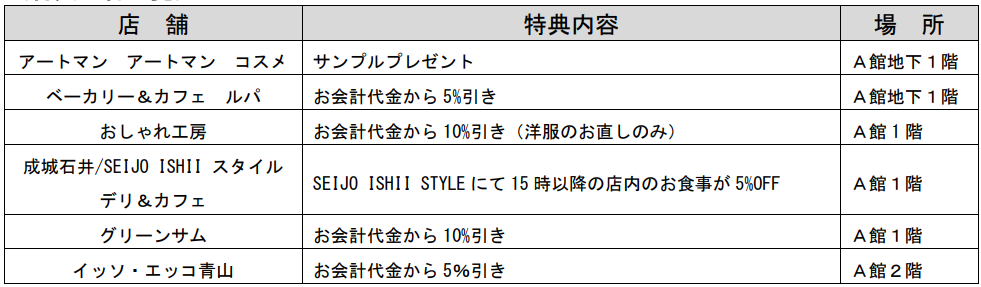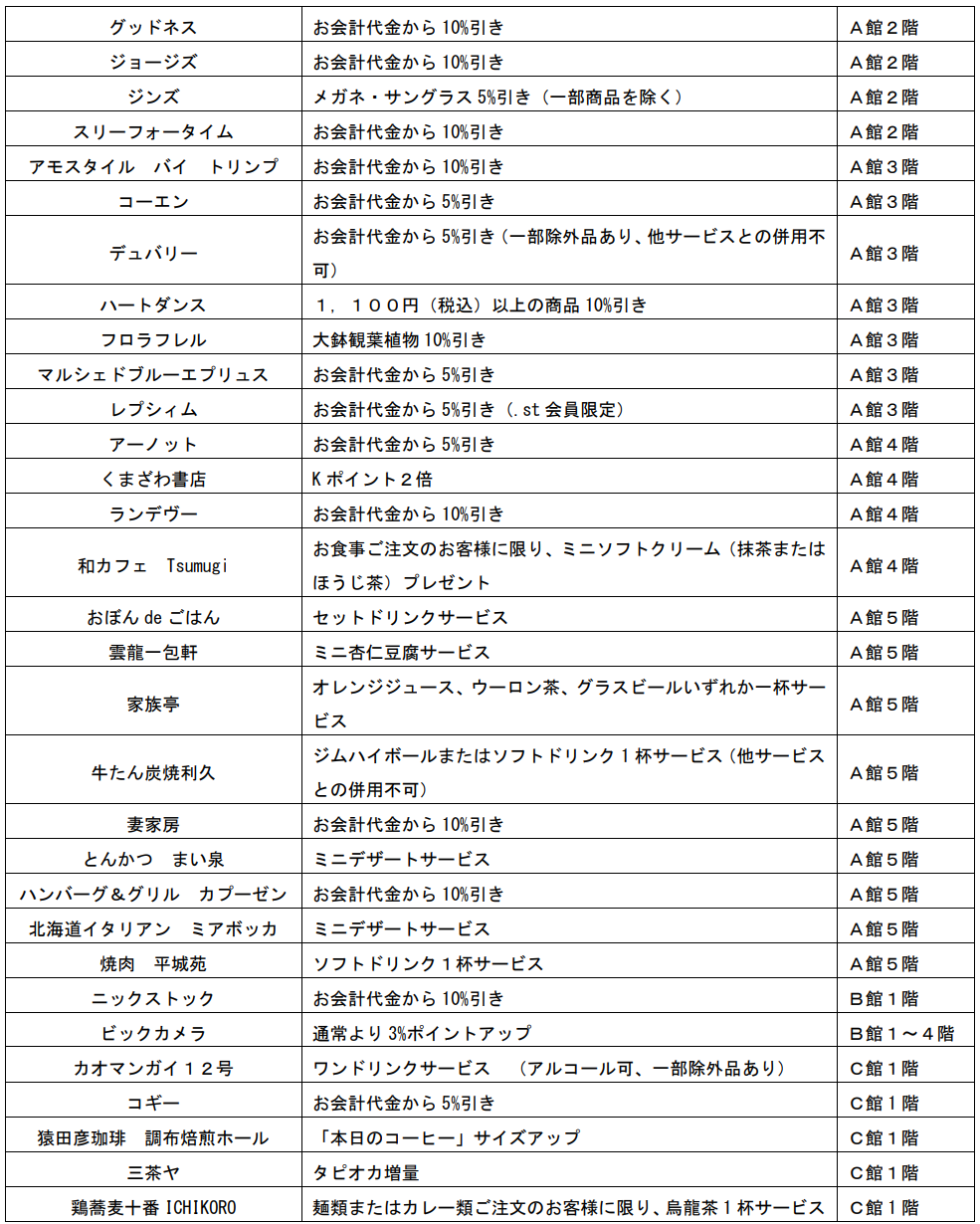 ※各店の特典内容は予告なく変更する場合があります。