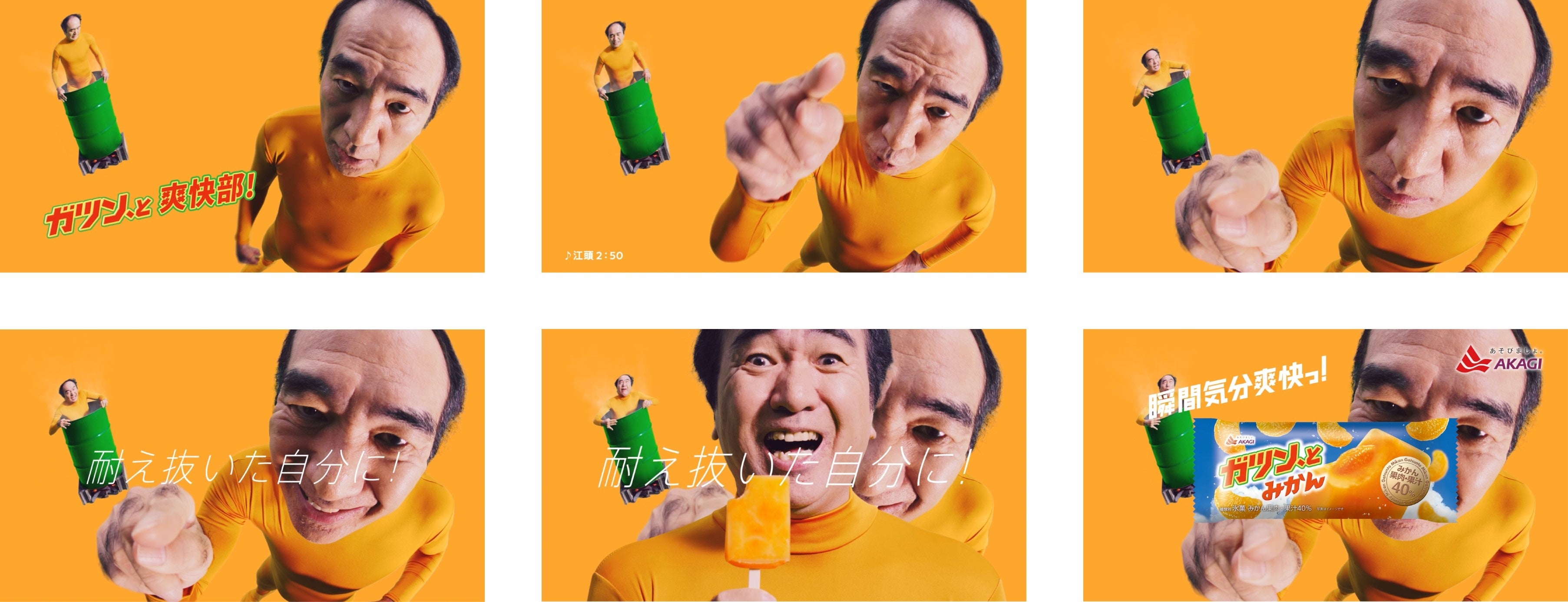 「ガツン、とみかん」は、みかんアイスキャンディーにみかん果肉をガツン、と入れることで、みかんの果肉感と果汁感を存分に楽しむことができる、”瞬間気分爽快っ!”なアイスキャンディーです。