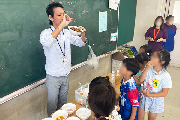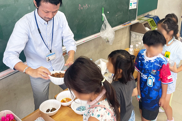弊社が運営する音楽教室のドラム学科 「ドラム義塾」の創立者である西が、空きペットボトルを使ったマラカス作りを指導。