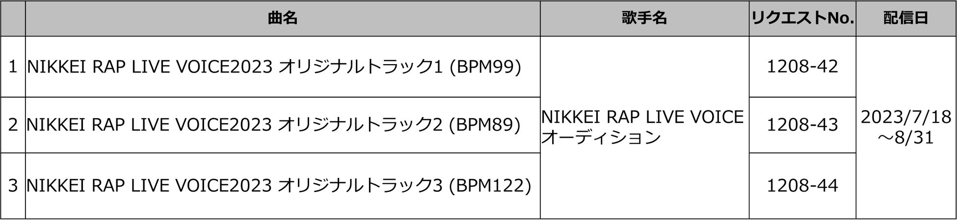 当社は、このコンテストの趣旨に賛同し「NIKKEI RAP LIVE VOICE」の応募用音源トラックをDAMに配信します。