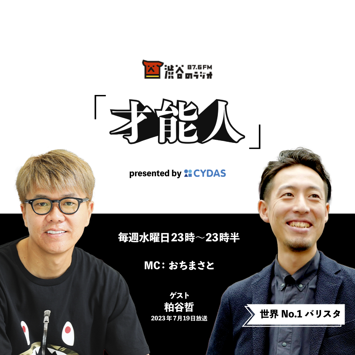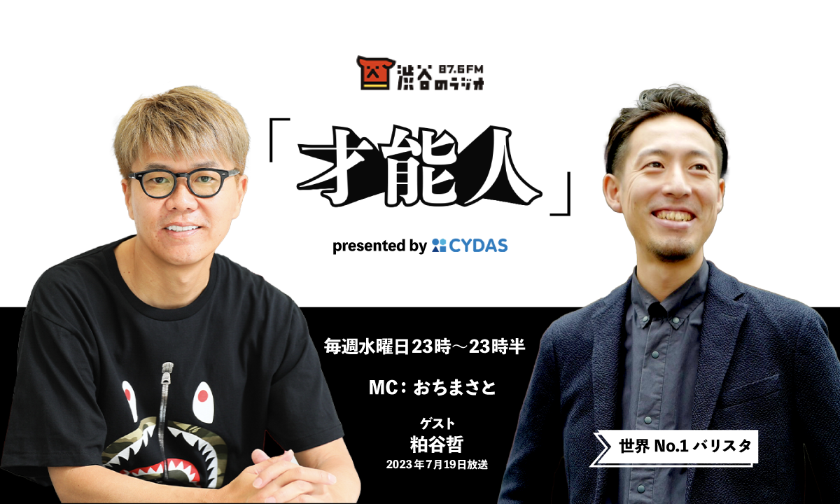 天才プロデューサー・おちまさとのラジオ番組『才能人』(渋谷のラジオ 87.6MHz 毎週水曜日 午後11時~)。7月19日放送のゲストは、コーヒー抽出の世界大会『ワールド・ブリュワーズ・カップ(WORLD BREWERS CUP)』において、アジア人初の世界チャンピオンに輝いた粕谷哲。入院生活中に気づいた自分の才能、自らを天才と言い切る秘密とは。今回も自分の才能が何かに気づくヒントが語られる。