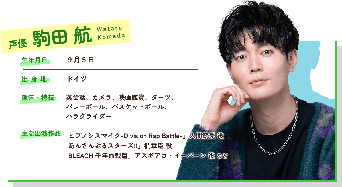 今回は『ヒプノシスマイク』入間銃兎役でお馴染み・駒田航と、