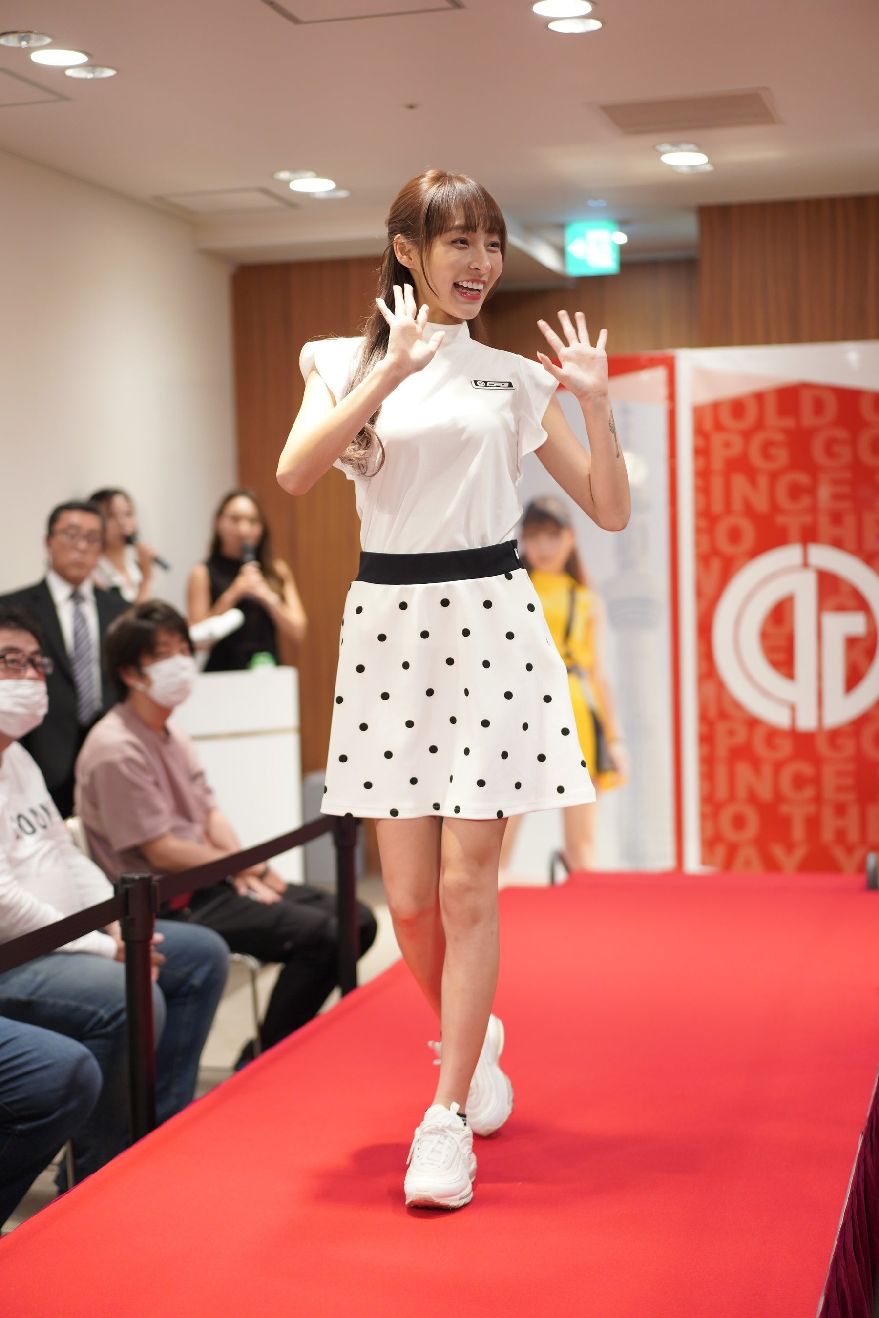 台湾プロ野球界で注目されるチアリーダーの”リン・シャン(Mizuki)”が15日、CPG GOLFブランドアンバサダーとしての日本初の単独イベントとして、大阪・阪急うめだ本店でキャットウオークショー&トークショーに参加しました。「CPG GOLF」の新ウエアを着用して、さまざまな表情を見せてファンを楽しませました。