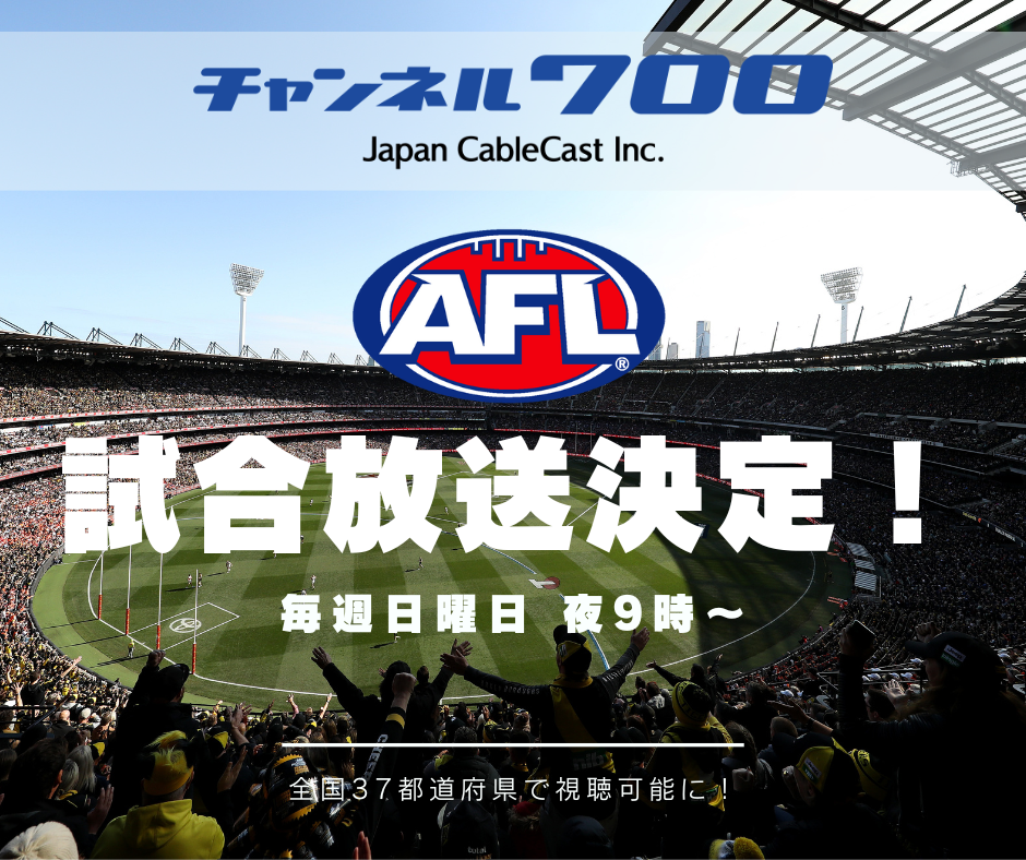 この度、オーストラリアで人気を誇る「AFL」の試合に日本語の解説を入れた映像をチャンネル700にて放送されることが決定いたしました。チャンネル700は日本のケーブルテレビ局を結ぶ全国ネットワークで97局に採用、視聴可能世帯は約320万世帯となっているチャンネルです。