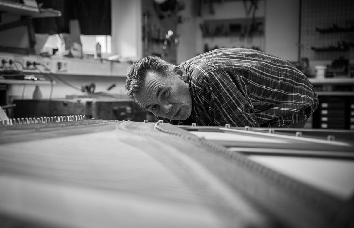 ドイツ⽣まれのラトビア⼈、デイビッド・クラビンス(David Klavins)氏は1976年からボンという町で中古ピアノの修理の⼯房を運営しながら、最⾼の⾳⾊を求めて⾃作のピアノに挑戦を始めました。