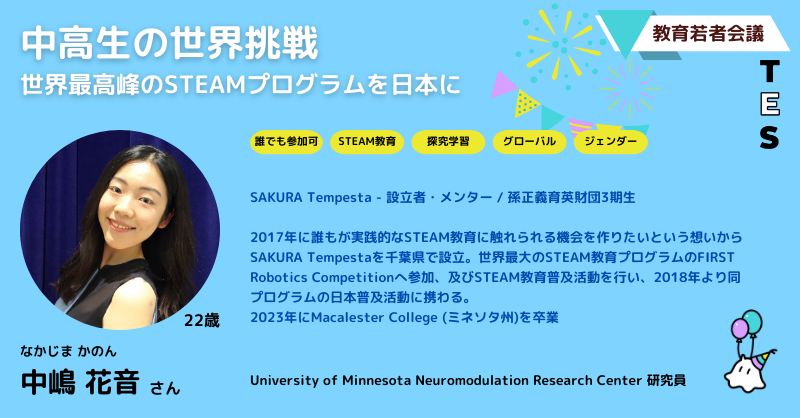 プログラム例1)STEAM教育~中高生の世界挑戦、世界最高峰のSTEAMプログラムを日本に~