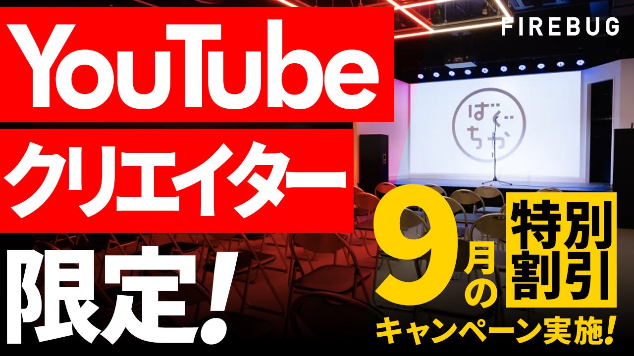 株式会社FIREBUG(本社:東京都渋谷区、代表取締役 CEO:佐藤詳悟、 以下当社)はこの度、当社が運営するレンタルイベントスペース「ばぐちか」をお得に利用いただけるYouTubクリエイター限定のキャンペーンを実施することをお知らせいたします。