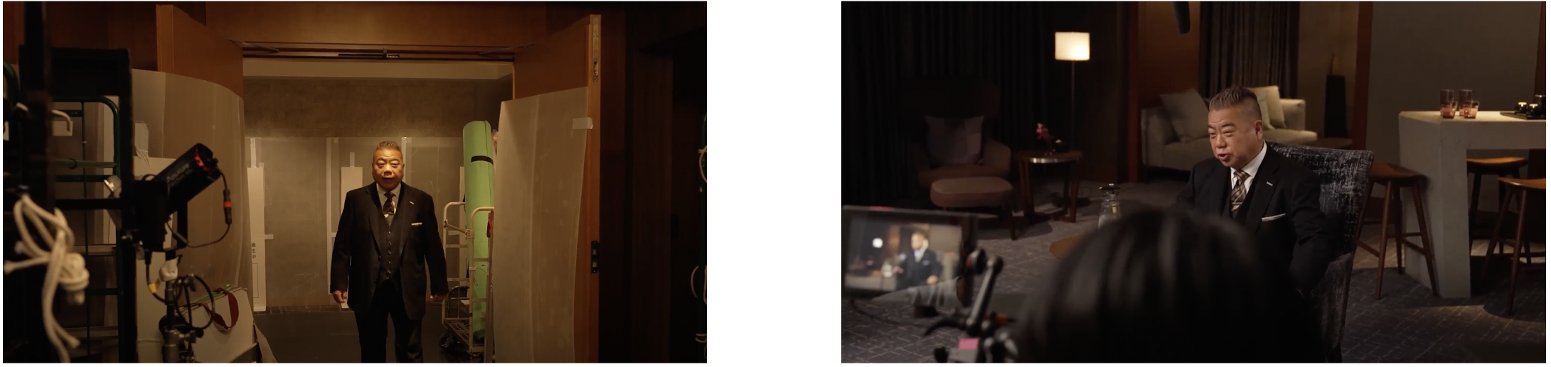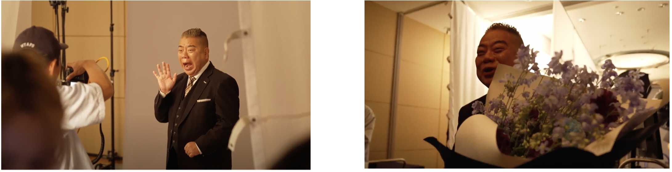 フォーマルなブラックスーツを身にまとい、普段テレビでは見せない真剣な面持ちで現場に登場した出川さん。スタッフ一人ひとりの目をみながら挨拶をする姿は、まるで歴戦を潜り抜けてきた大物俳優のような貫禄を放っていました。CM撮影では、落とし穴有識者として思い出に残る落とし穴のエピソードを交えながら、落とし穴の防ぎ方を語っていただきました。インタビューがノンストップで100分に差し掛かるころに、監督からECの売上の落とし穴について質問が。これまで饒舌だったにも関わらず10秒以上固まる出川さん。このリアクションがどうしてもほしくて、あえて製品やCMの説明をしてこなかった制作陣から笑みが溢れた瞬間でした。