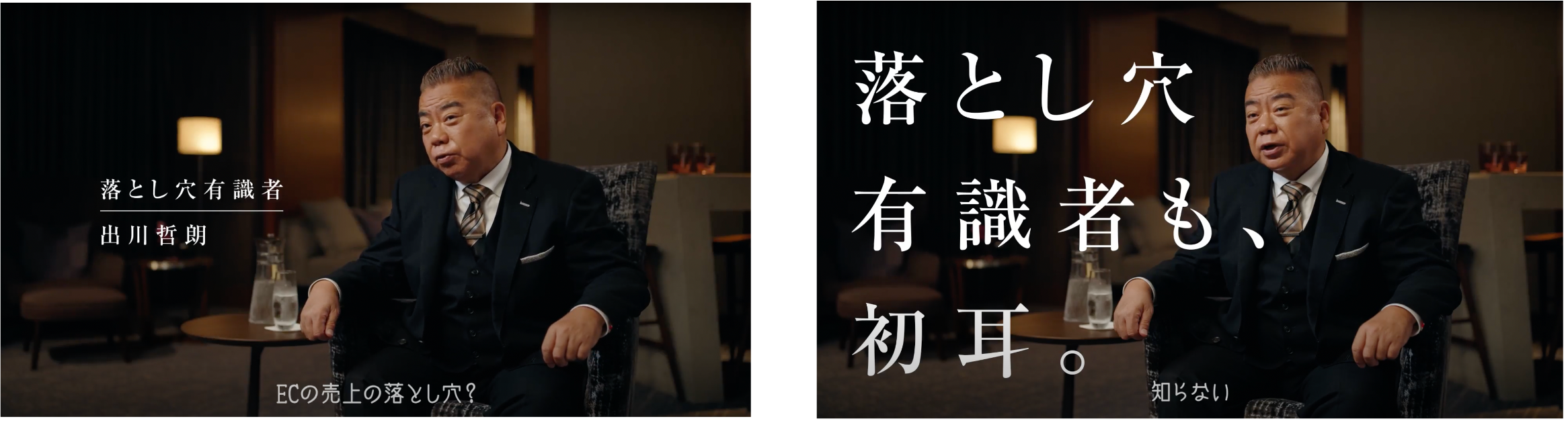 今回制作した新CMは、「落とし穴有識者・出川哲朗さん」にインタビューを実施。インタビューでは、思い出深い落とし穴のエピソードや見事に落とし穴に落ちた瞬間の感情など、有識者ならではの目線でこれまでを振り返っています。しかし、落とし穴については流暢に語っていただくも、ECの落とし穴については「EC」というワード自体が「初耳である」という結果に。ドッキリの落し穴とECの落し穴というテーマの絶妙なミスマッチさにご注目ください。