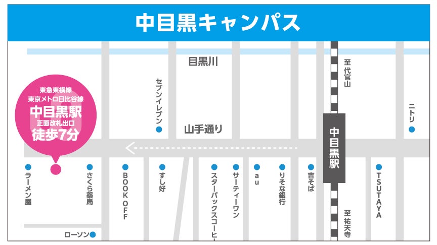 ■ワタナベエデュケーショングループ中目黒館(〒153-0043 東京都目黒区東山1-4-1)