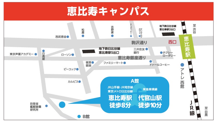 ■ワタナベエンターテイメントカレッジ恵比寿A館(〒150-0022 東京都渋谷区恵比寿南2-12-18)