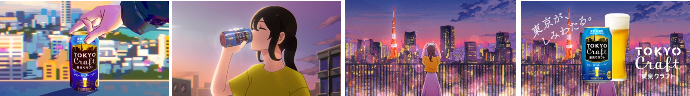「東京を居場所と決めた⾃分に乾杯」とそれぞれの男⼥が、東京クラフトを⼀⼝。
