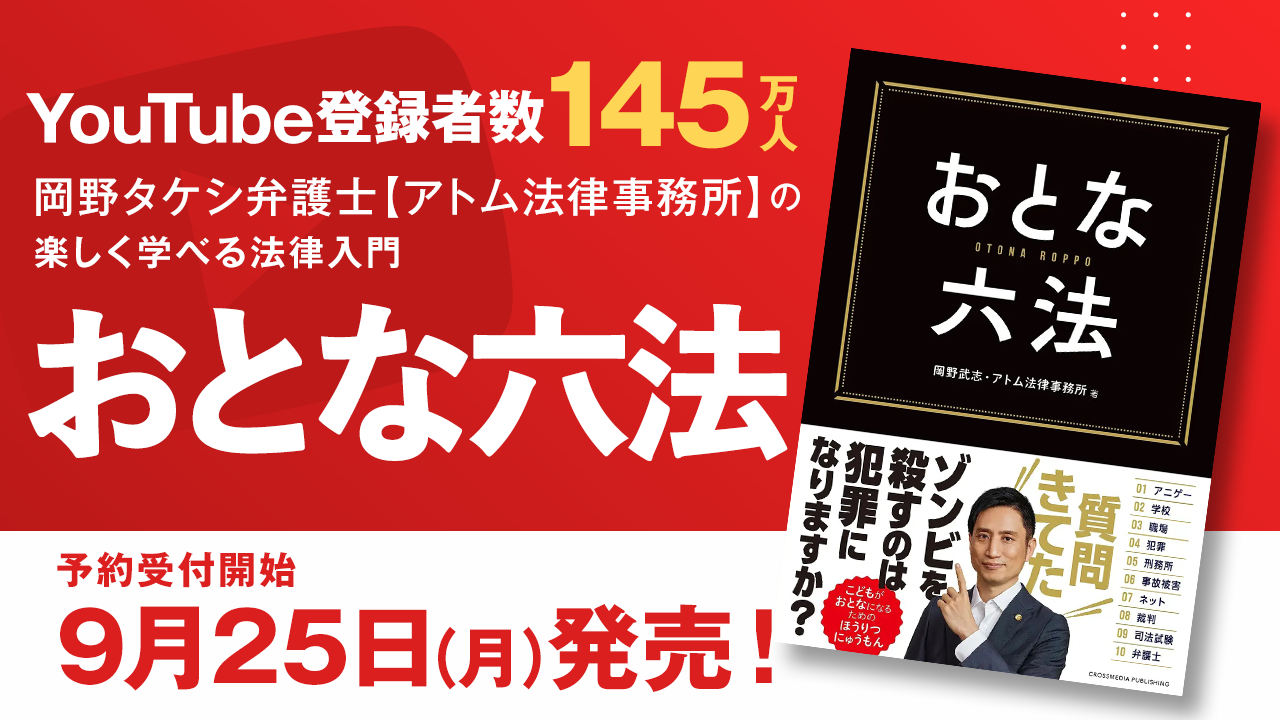 そんな方のために、ユーモアをまじえた動画で法律をわかりやすく解説し、YouTube登録者数145万人を突破した岡野タケシ弁護士が、カジュアルにクスリと笑いながら法律を学べる本を作りました!