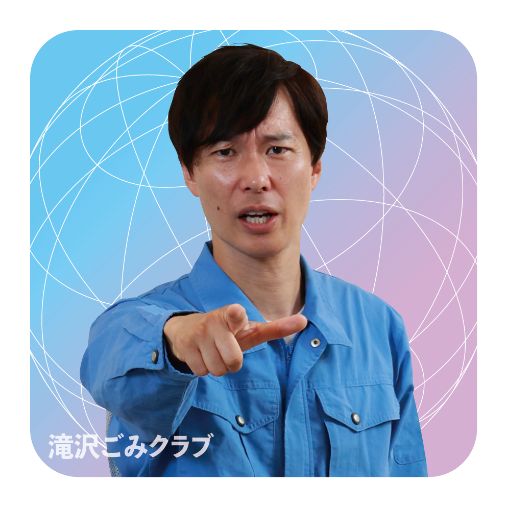 1976年、東京都生まれ。1998年、西堀亮とお笑いコンビ「マシンガンズ」を結成。2012年から芸人を続けながらゴミ収集会社に就職。『このゴミは収集できません』(白夜書房)、『ゴミ清掃員の日常』(講談社)などゴミ収集の体験記を数多く出版。「THE MANZAI」2012,14年認定漫才師。2020年、環境省「サステナビリティ広報大使」に就任。ゴミを減らす活動や、SDGsに関するさまざまなアクションを共有・実践できるオンラインコミュニティ「滝沢ごみクラブ」https://community.camp-fire.jp/projects/view/515426 を開設。Twitterフォロワー数18万人@takizawa0914
