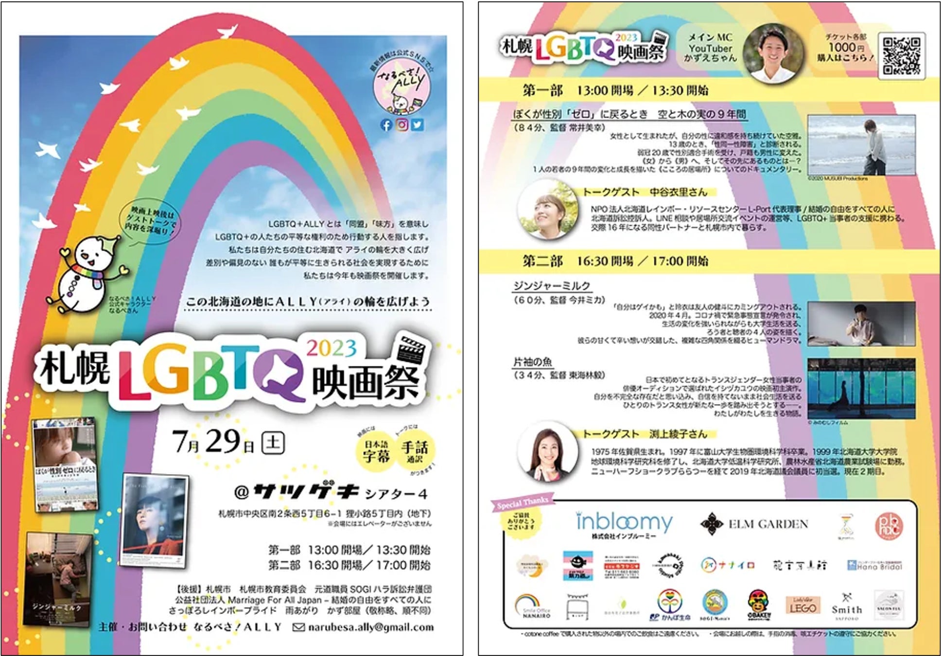 札幌市/札幌市教育委員会/元道職員 SOGIハラ訴訟弁護団/公益社団法人 Marriage For All Japan – 結婚の自由をすべての人に/さっぽろレインボープライド/雨あがり/かず部屋(順不同・敬称略) |