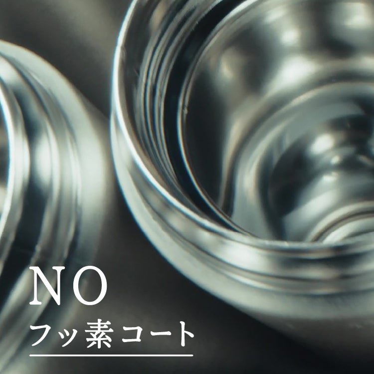 環境・健康の両面への影響を考え、私たちは、フッ素コートを全真空断熱ボトルに使わず、高度な研磨技術で同等の防染性能を実現しています。