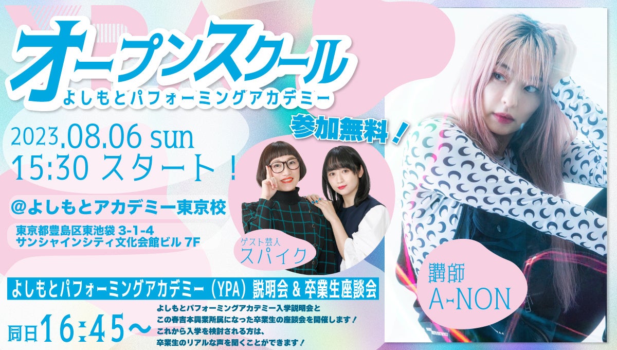 数多くのスターを輩出する国内最大規模のお笑い養成所NSC(吉本総合芸能学院)、マネージャー、構成作家、劇場・ライブプロデューサー、番組ディレクターetc…数多くの即戦力エンタテイメントスタッフを輩出するよしもとクリエイティブアカデミー(YCA)、俳優、パフォーマー、歌手、よしもとから“本格的”にデビューを目指すタレント養成所よしもとパフォーミングアカデミー(YPA)、よしもとでエンタメ×デジタルの最前線を学び即戦力を目指すスクールよしもとデジタルエンタテインメントアカデミー(YDA)、よしもとのスクールでエンタメを学び高校卒業資格が取れるよしもとの学校、吉本興業高等学院。これら5校からなる吉本興業グループの唯一の教育機関であるよしもとアカデミーは、この度、すべてのスクールの授業の特徴が1日で分かる「夏休み 1DAYオープンスクール」を8月6日(日)に開催します。