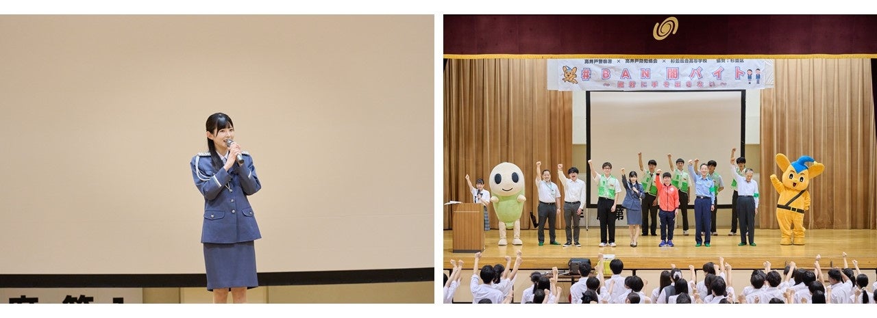 この度、東京都立杉並総合高等学校で「#BAN闇バイト ~絶対に手を出さない~ 」が開催され、特別防犯支援官のSTU48尾崎世里花氏が出演しました。