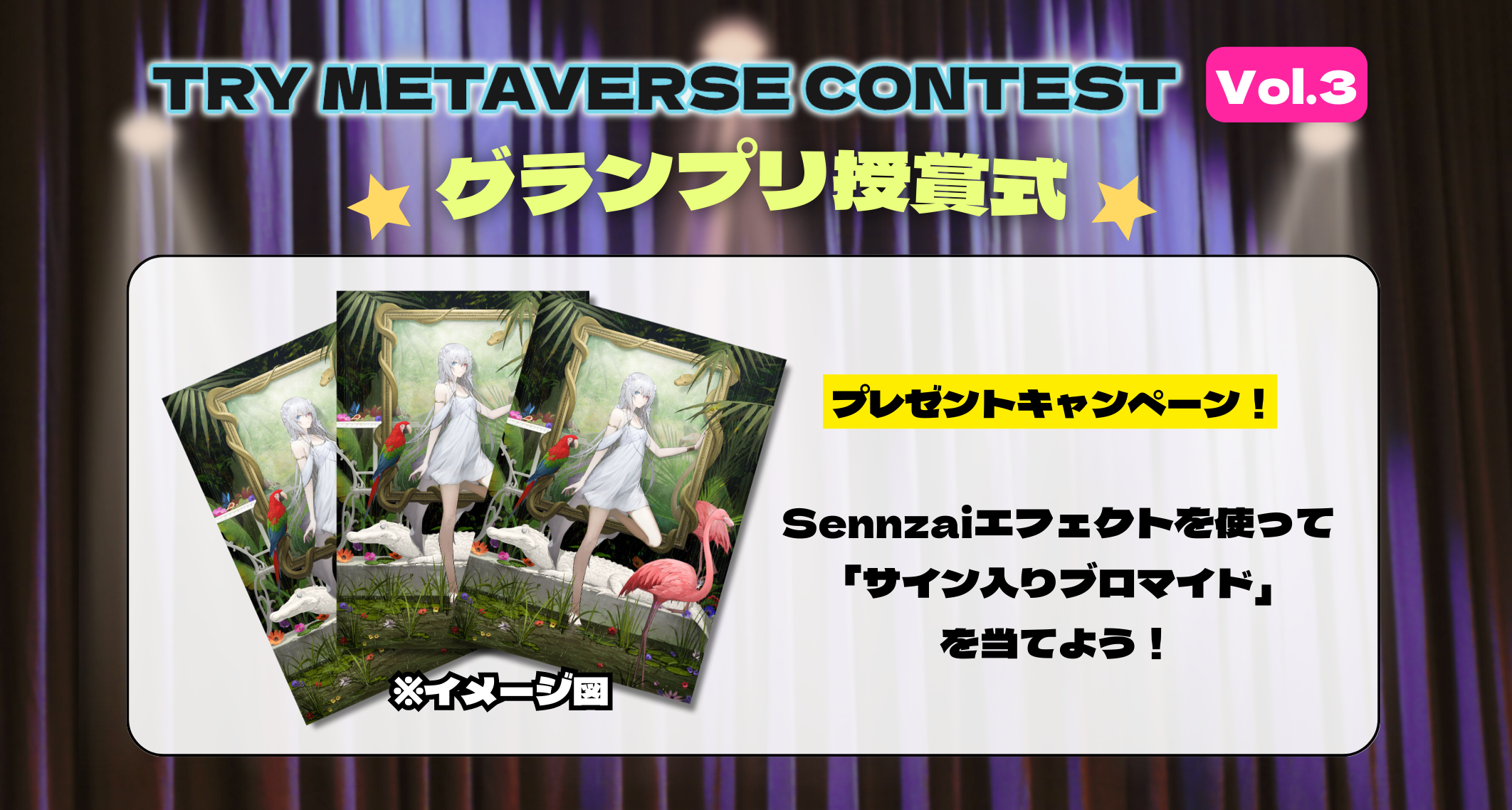 8月1日のグランプリ授賞式のイベント中に、Sennzaiエフェクトをご利用された方の中から抽選で3名様に「Sennzaiサイン入りブロマイド」をプレゼント!