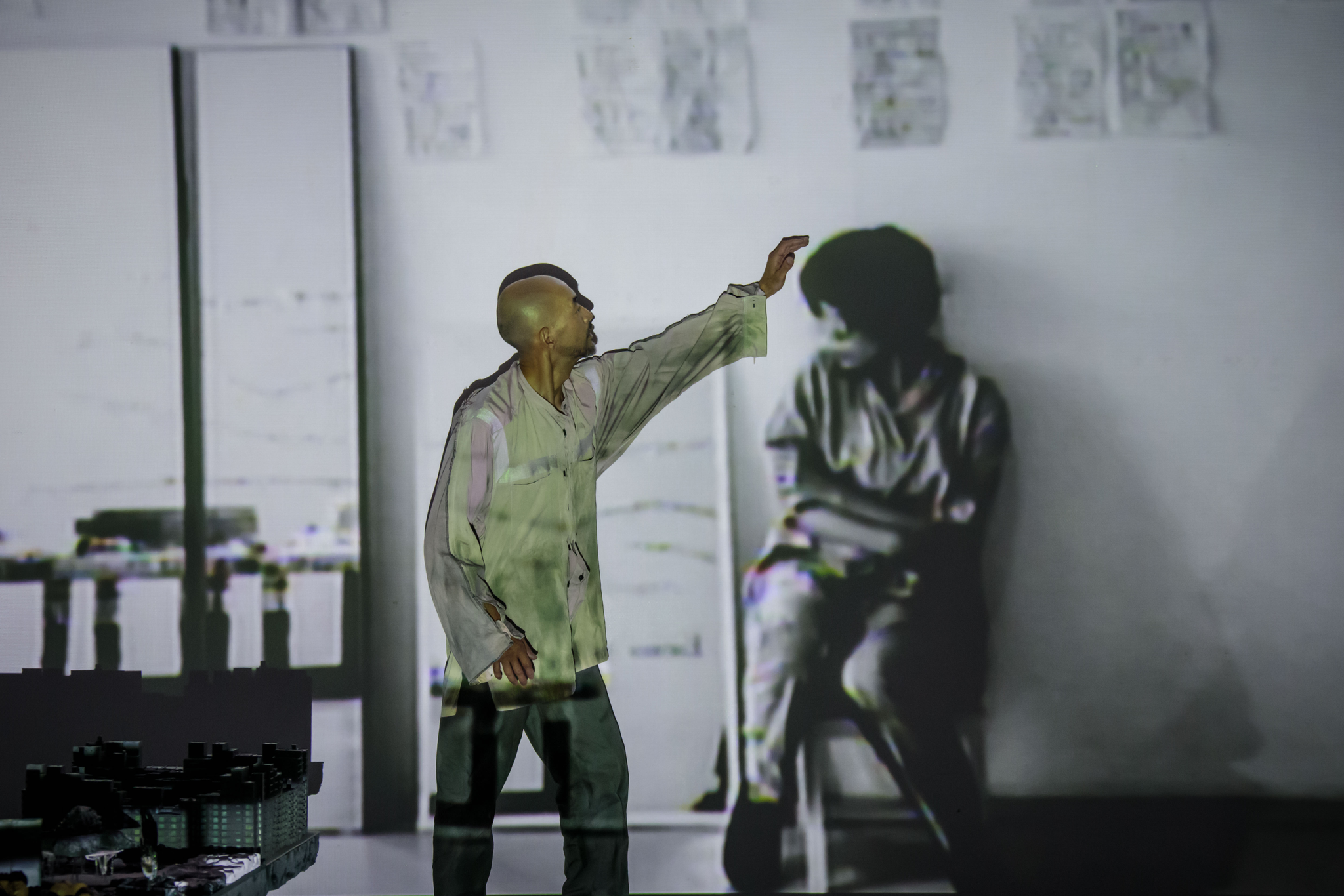 身体と声と歌と音楽と光と美術による、ダイナミズムと間合いと絶妙なる均衡という従来の小池さんの舞台に、今回は、映像が重ねられた。すでに準備されている映像と、新たに舞台の上で作り出されていく映像と、その映像にとらえられている今この瞬間の舞台の上の現実が、三重構造になって展開して、観る者の脳を揺さぶる…