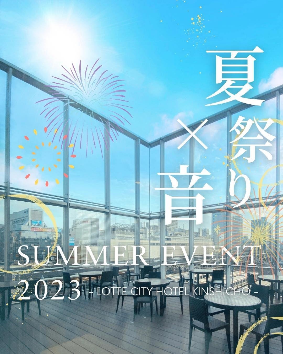 ロッテシティホテル錦糸町(所在地:東京都墨田区錦糸4-6-1、総支配人:福井朋也)は、2023年7月29日(土)に、プロミュージシャンによる生演奏、豪華DJ陣によるDJプレイ、子供向け夏祭り縁日が同時に堪能できるイベントを開催いたします。リニューアルされたテラスはトレインビューも楽しめ、錦糸町では珍しい吹き抜けのテラスとなっております。錦糸町の特等席でこの夏限定のイベントをお楽しみ下さい。