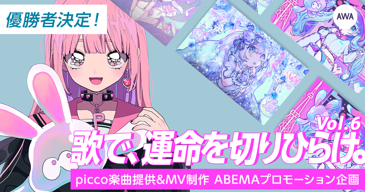 7月24日にFinalステージ進出者が一堂に会して、歌唱審査を開催。審査員を務めたpiccoを中心に審査を行い優勝者が決定いたしました。見事、オリジナル楽曲提供の権利を勝ち取ったのはEMUNEKO。本配信者には、piccoの楽曲が提供され、レコーディングから配信までをAWAがサポート。オリジナル楽曲のミュージックビデオを制作し、ABEMAにて楽曲プロモーションも実施いたします。