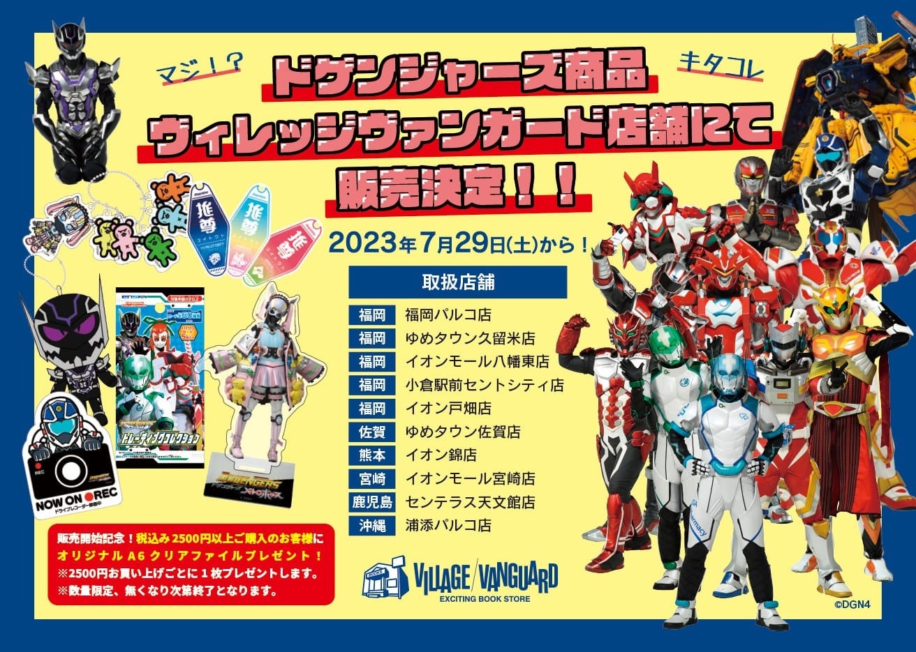 2023年7月29日(土)より、全九州の人々が100年間待ち続けてきた待望の『ドゲンジャーズ』グッズが九州のヴィレッジヴァンガード10店舗限定で発売決定!少しヘンでどこか面白いという部分ではとにかく親和性を感じざるをえなかったドゲンジャーズとヴィレッジヴァンガードがようやく共演することになりました。人気で売り切れだった商品はもちろん、最新の商品もご用意しております。また、税込¥2,500以上お買い上げの方には今回だけの特別なノベルティも!!その他にも、店頭に来ていただかないと味わえない様々な『楽しいもの』もご用意しておりますのでお楽しみに!