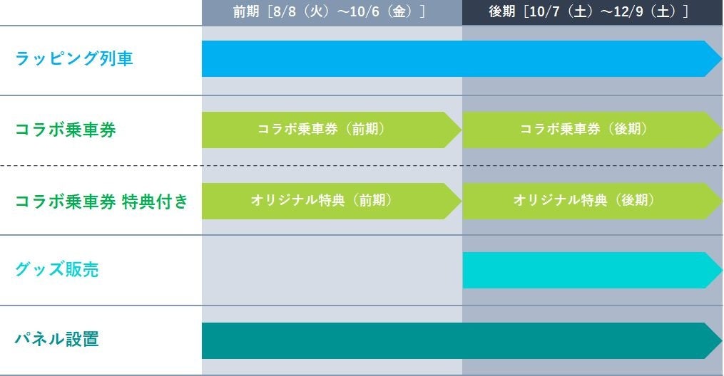 [前期] 日時:2023年8月10日(木)~2023年10月6日(金)各駅の営業時間開始時刻~終了時刻まで [後期] 日時:2023年10月9日(月)~2023年12月9日(土)各駅の営業時間開始時刻~終了時刻まで<利用可能日> 2023年8月8日(火)~2024年1月8日(月・祝)